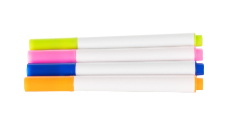- FLAMASTRY SĄ FLUORESCENCYJNE – 4 fluorescencyjne mazaki mają neonowe barwy, dodatkowo w ciemności, zmieniają kolory pod wpływem światła z tablicy.