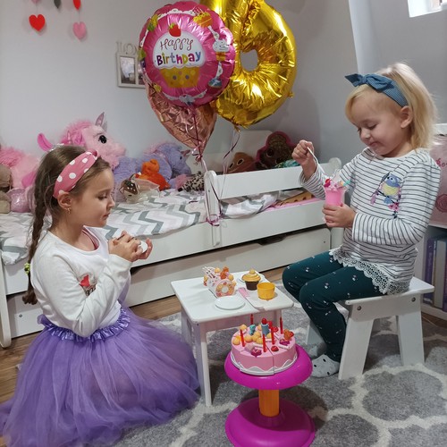 - KOMPLETNY ZESTAW – w zestawie znajduje się 75 elementów, filiżanki wraz z talerzykami oraz łyżeczkami, czajnik z pokrywką, tort, świeczka, ciastka, dodatki do tortu i wiele innych, które urozmaicą dziecku zabawę!
