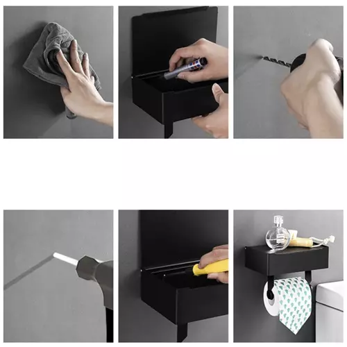 - ŁATWY MONTAŻ – czarny uchwyt na papier toaletowy jest montowany do ściany za pomocą wkrętów wystarczy wywiercić otwory (kołki w zestawie) i zamocować zestaw. Uchwyt można przymocować do większości ścian.