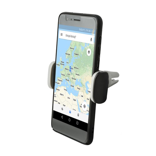 Akcesorium przystosowane jest do montażu w kratkach wentylacji samochodu. Wykonane z miękkiego poliuretanu nakładki pozwalają na utrzymanie uchwytu we właściwym miejscu nawet podczas jazdy po nierównościach, a także stabilizują pozycję telefonu. Obrotowa głowica umożliwia dopasowanie położenia urządzenia mobilnego w dogodnej pozycji, najbardziej optymalnej dla użytkownika. Położenie głowicy oraz swobodę jej obracania można kontrolować za pomocą pokrętła, które pozwala także na jej całkowite zablokowanie, jeżeli zostanie całkowicie dokręconego.