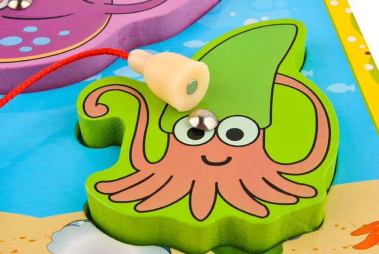 Gra jest ciekawym zestawem składającym się z tablicy, 8 stworzeń morskich oraz wędki. Wędka oraz żyjątka morskie posiadają małe magnesy, co niewątpliwie uatrakcyjnia zabawę, jak również usprawnia chwytanie.