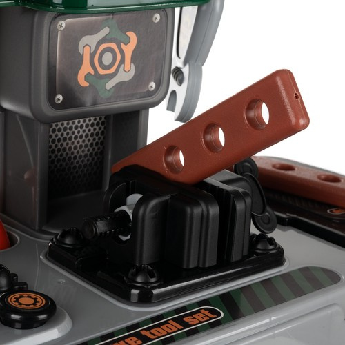 ?? realistyczne narzędzia i funkcje – zestaw zawiera różnorodne narzędzia, takie jak klucz, młotek, piła, imadło oraz śruby i nakrętki, które naśladują prawdziwe narzędzia