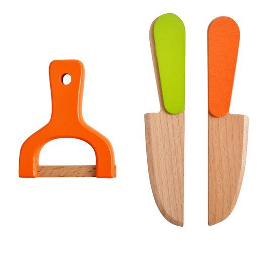 - MOŻLIWOŚĆ KROJENIA I PONOWNEGO ŁĄCZENIA – dzięki dołączonym do zestawu 2 nożykom i deseczce oraz wewnętrznym magnesom można krajać artykuły na pół, a niektóre nawet na więcej kawałków! Później ponownie łączyć ze sobą, co niewątpliwie urozmaica zabawę. W zestawie znajduje się również imitacja obieraczki.