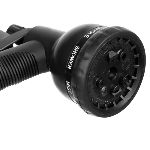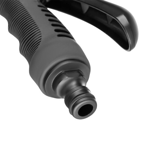 - PISTOLET Z 8 RODZAJAMI NATRYSKU – wąż ogrodowy wyposażony został w 8 obrotowych dysz. Z jego pomocą podlejemy trawnik, kwiaty, wykąpiemy zwierzęta domowe oraz umyjemy samochód. Regulacja ciśnienia wody może odbywać się na dwa sposoby: za pomocą śruby zaworu, oraz ruchomej rączki. Pistolet posiada również funkcję blokady – wystarczy odchylić metalowy haczyk w pistolecie – woda będzie wtedy płynąć bez konieczności ciągłego przyciskania spustu pistoletu.