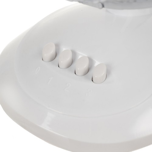 - LEPSZY EFEKT CHŁODZENIA – wentylator wyposażono w głowicę z możliwością regulacji kąta nachylenia „góra – dół”. Pozwala to dokonać wyboru najbardziej komfortowego nastawienia kierunku nadmuchu powietrza. Na przodzie podstawy wentylatora znajduje się intuicyjny panel sterowania, który umożliwia łatwe dostosowanie trybu pracy do własnych potrzeb. Do dyspozycji mamy 3 szybkości, dzięki którym w łatwy sposób można zmienić prędkość, od delikatnego powiewu do mocnego strumienia powietrza, co pozwala na idealne dostosowanie do panujących warunków i osobistych preferencji.