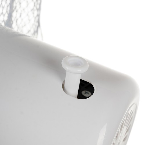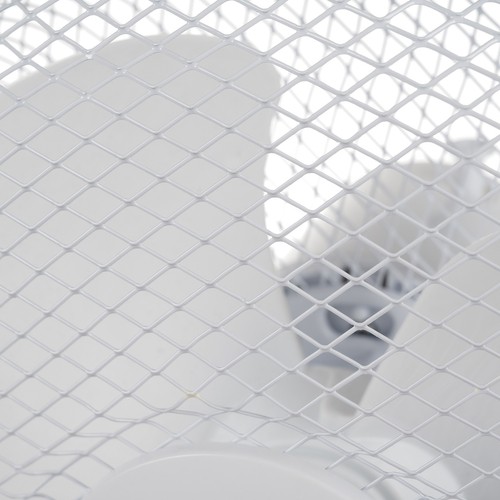 - OSŁONA SKRZYDEŁ WENTYLATORA – trzy solidne śmigła są zamknięte w wytrzymałej metalowej obudowie z siatki, która zapewnia bezpieczeństwo użytkowania i elegancki wygląd. Metalowa obudowa jest zamykana z obu stron, co chroni śmigła przed uszkodzeniami i zapewnia trwałość na lata.