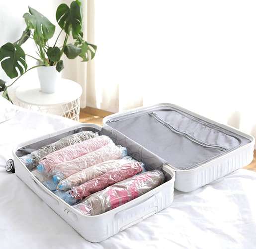 - OSZCZĘDNOŚĆ MIEJSCA – wystarczy zapakować rzeczy do worka. Worek próżniowy po odessaniu powietrza zwykłym odkurzaczem zmniejsza swoją objętość nawet do 80%. Umożliwia zaoszczędzenie dużej ilości przestrzeni.