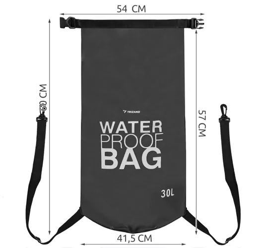 - SPECYFIKACJA – kolor: czarny; materiał: PVC; pozostałe: poliester + PP; wymiary worka: 41,5 x 57 cm; wymiary zewnętrzne: 54 x 60 cm; regulowany pasek: 55-105 cm; waga: 0,487 kg; waga w opakowaniu: 0,538 kg.