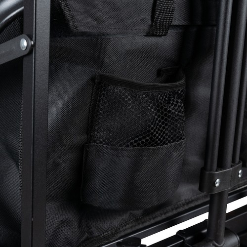 - WKŁAD DO WÓZKA – jest z wysokiej jakości materiału OXFORD, jest wytrzymały, wodoodporny i trwały. Wkład wózka należy przymocować do konstrukcji metalowej za pomocną mocnych rzepów. Posiada on również wygodne rączki, które po spięciu mocnym rzepem, ułatwiają jego transport w formie złożonej. Spód wkładu jest usztywniany, co gwarantuje stabilność i bezpieczeństwo dla przewożonych przedmiotów. Na środku znajduje się wzmocniony uchwyt, który ułatwia złożenie wózka. Dwie kieszenie z przodu wózka są idealne do przewożenia napojów, przekąsek lub umieszczenia w nich telefonu komórkowego.