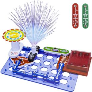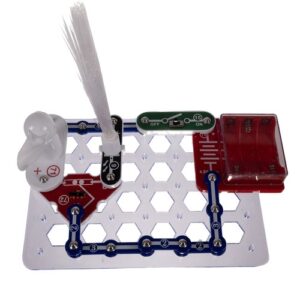 ZESTAW EDUKACYJNY MAŁY ELEKTRONIK ŁATWE ŁĄCZENIE – elementy zestawu łączysz na metalowe zatrzaski. Łatwość połączenia nie będzie sprawiać dziecku problemu, wystarczy docisnąć, a zatrzaski się połączą. EFEKTY ŚWIETLNE ORAZ RUCHOWE – po złożeniu oraz włączeniu włącznika on/off pojawiają się efekty takie jak: uruchomienie silniczka w wiatraczku oraz zapalenie się lampek. Daje to niezwykłe efekty oraz radość dla…