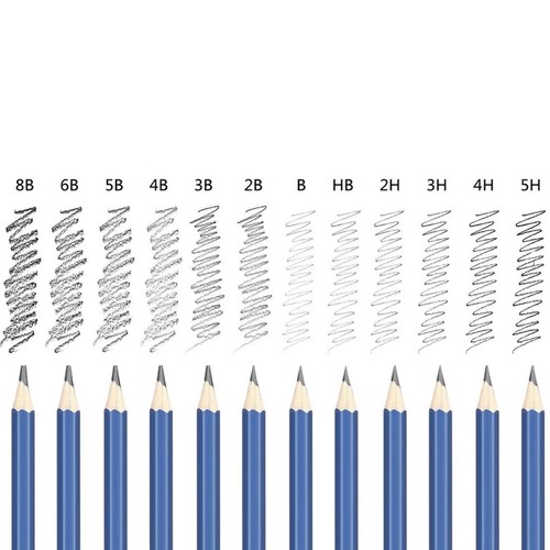 - 12 ołówków do szkicowania (2H / 3H / 4H / 5H / HB / B / B2 / B3 / B4 / B5 / B6 / B8)