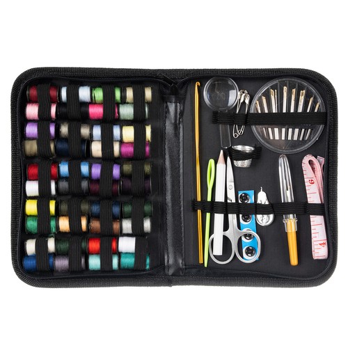 - ETUI – wszystko zamknięte zostało w czarnym etui wykonanym z wysokiej jakości materiałów organizerze. Dzięki niemu możesz trzymać przyrządy do szycia w jednym miejscu. Bez problemu schowasz je do torebki czy plecaka i zabierzesz ze sobą w podróż.