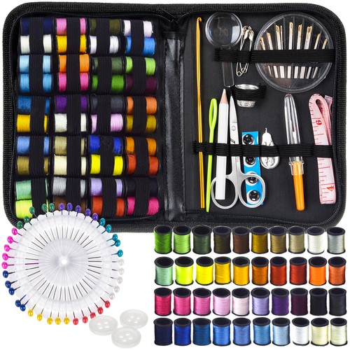 - AŻ 129 ELEMENTÓW W ZESTAWIE – zestaw nici i akcesoriów świetnie sprawdzi się zarówno dla początkujących jak i zaawansowanych osób. Znajduje się w nim wszystko co potrzebne jest do wykonywania prac ręcznych: nici, igły, nożyczki, centymetr, naparstek, nawlekacze, agrafki. Akcesoria występują w różnych kolorach, dzięki czemu cieszą oko i sprawiają przyjemność podczas pracy.