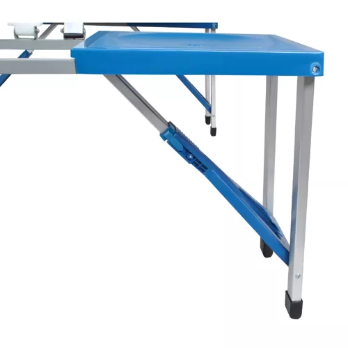 - ŁATWY MONTAŻ – zestaw rozkłada się jak i składa zaledwie w niecała minutę. Wystarczy otworzyć walizkę, wyjąć i rozłożyć krzesełka, rozłożyć nóżki oraz je zabezpieczyć. Blat stołu jest jednocześnie walizką, w której możemy schować krzesełka. Stół posiada zabezpieczenia, dzięki którym nie ma ryzyka, że podczas transportu walizka się nie otworzy.