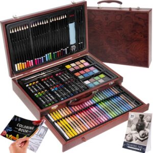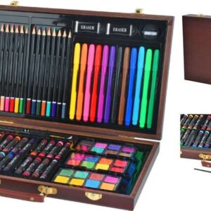 ZESTAW DO MALOWANIA W DREWNIANEJ WALIZCE Z SZUFLADĄ MNÓSTWO ELEMENTÓW – zestaw do malowania w walizce posiada wiele elementów, w tym: 60 kredek woskowych, 24 pastele, 24 kredki drewniane, 24 farbki wodne, ponadto 2 pędzelki, temperówkę, 8 papierów ściernych, gumkę, dwa ołówki HB oraz 2B. PRAKTYCZNA WALIZKA Z SZUFLADKĄ – zestaw artystyczny dla dzieci posiada praktyczną drewnianą…