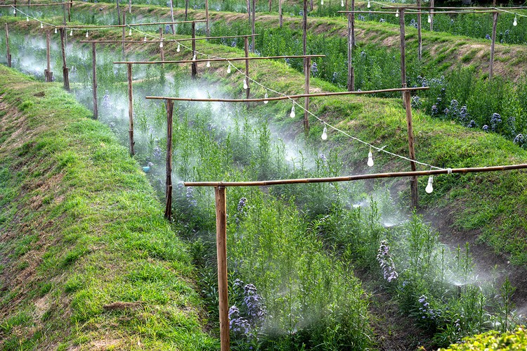 - 11 DYSZ ZRASZAJĄCYCH – wysokiej jakości dysze wytwarzają bardzo lekką i delikatną kurtynę wodną, która kontroluje temperaturę otoczenia i pozwala na jej skuteczne obniżenie. Średnica dyszy o 6mm tworzy „klimę ogrodową”.