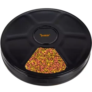 AUTOMATYCZNY DOZOWNIK DO KARMY PURLOV 6 KOMÓR – miska posiada 6 komór o pojemności 150ml każda. 5 jest zasłoniętych, a jedna otwarta. System otwierania czasowego podczas obracania pokrywy otwiera w określonym czasie jedną komorę z jedzeniem. PROGRAMATOR CZASOWY + WYŚWIETLACZ LED – jest to urządzenie, które usprawni karmienie Twojego pupila. Dzięki funkcji programowania czasu, nie musisz już więcej martwić się…